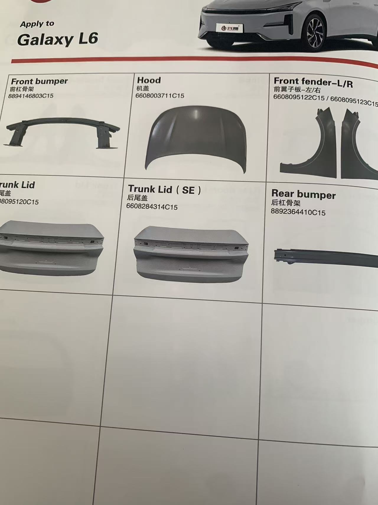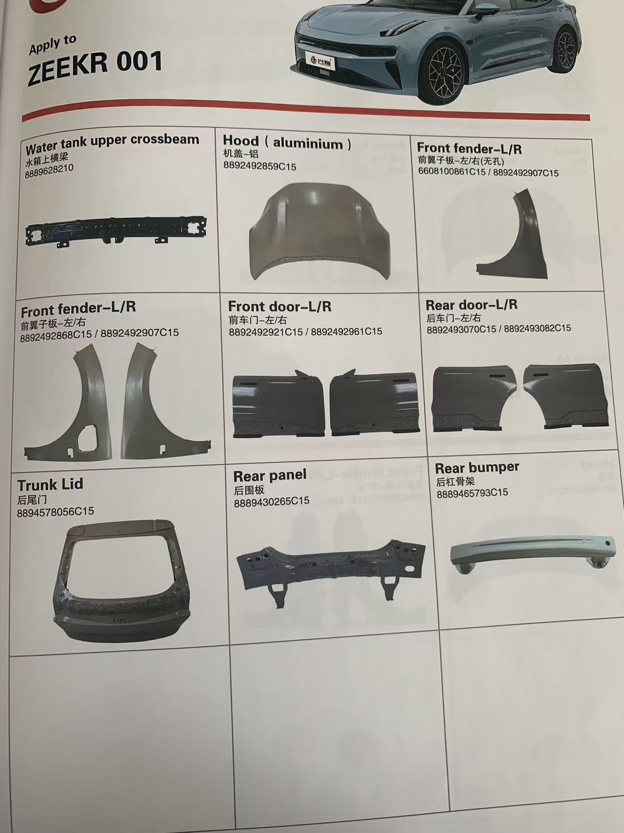 Nous nous concentrons sur tous les modèles de Geometry, Galaxy et ZEEKR. La catégorie des pièces automobiles couvre des catégories complètes telles que les pièces structurelles de la carrosserie, les composants du châssis, les pièces du système à trois électriques, les accessoires intérieurs et extérieurs, les composants électriques et les consommables d"entretien. Les modèles sont complets et adaptés avec précision, refusant d"utiliser des pièces générales pour composer le numéro et réalisant véritablement « une voiture, une adaptation précise et adaptée ». À l"avenir, nous continuerons à optimiser la chaîne d"approvisionnement et à améliorer la qualité du service, et à devenir un partenaire d"approvisionnement transfrontalier fiable de pièces automobiles à énergie nouvelle pour les clients mondiaux avec un fonctionnement honnête, un approvisionnement stable et un service attentionné.